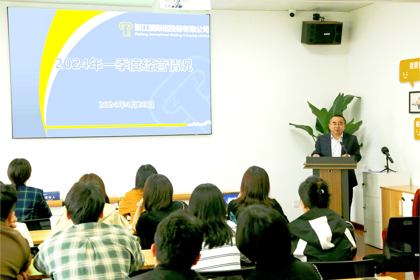 吴财荣总经理向全体员工通报了第一季度公司总体经营情况,各项经营指标稳中有升;总结和分析当前阶段获得的成果和存在的问题,对接下来的工作重点进行了部署。