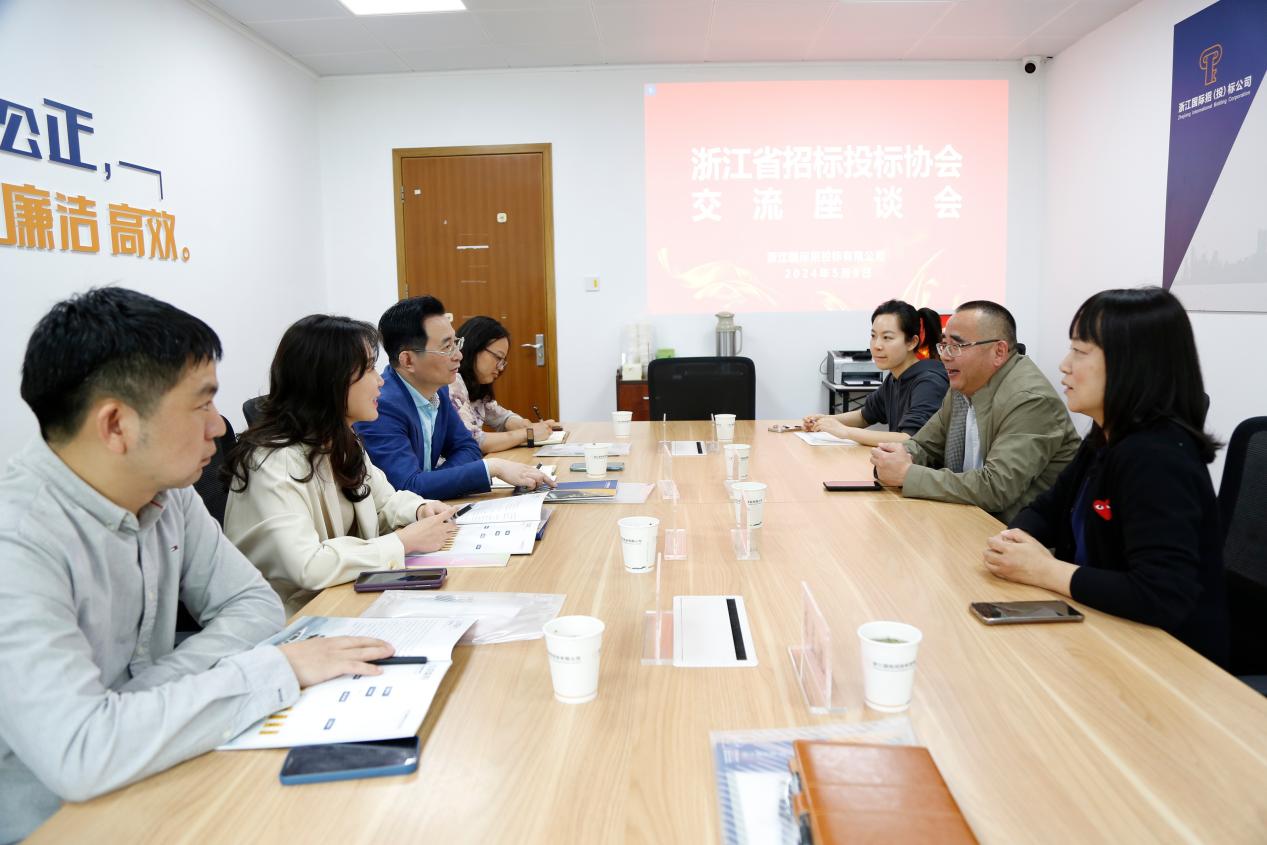 2024年5月9日上午,浙江省招标投标协会副秘书长兼办公室主任张坚雄、会员部主任张丹丹、信息部主任庞凯等一行莅临我公司考察调研,公司总经理吴财荣、副总经理汪帆及相关部门同志参加会议。
