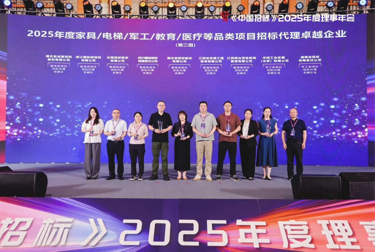 6月19日至21日,《中国招标》期刊有限公司2025年度理事年会和第五届招标采购与产业链供应链管理前沿论坛在合肥召开,公司总经理吴财荣受邀参加。公司凭借专业的技术水平、卓越的综合实力获得“交易领域专业驱动型示范单位”、“《中国招标》2025年度教育类项目招标代理卓越企业”、“《中国招标》2025 年度医疗类项目招标代理卓越企业”,招标七部经理周卉荣获“2025年度金牌项目经理”称号;这些荣誉不仅是对我们公司过去一年辛勤付出的肯定,更是对其在行业领域所取得卓越成就的赞誉。